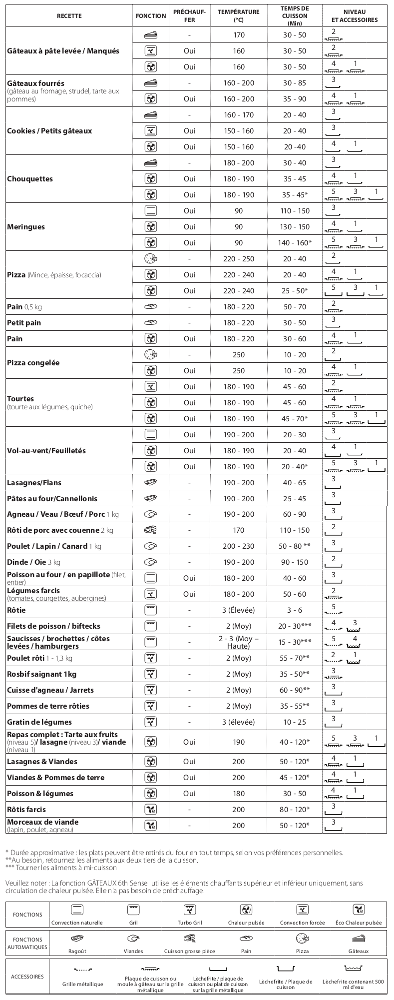 Le temps de cuisson ne comprend pas la phase de préchauffage.